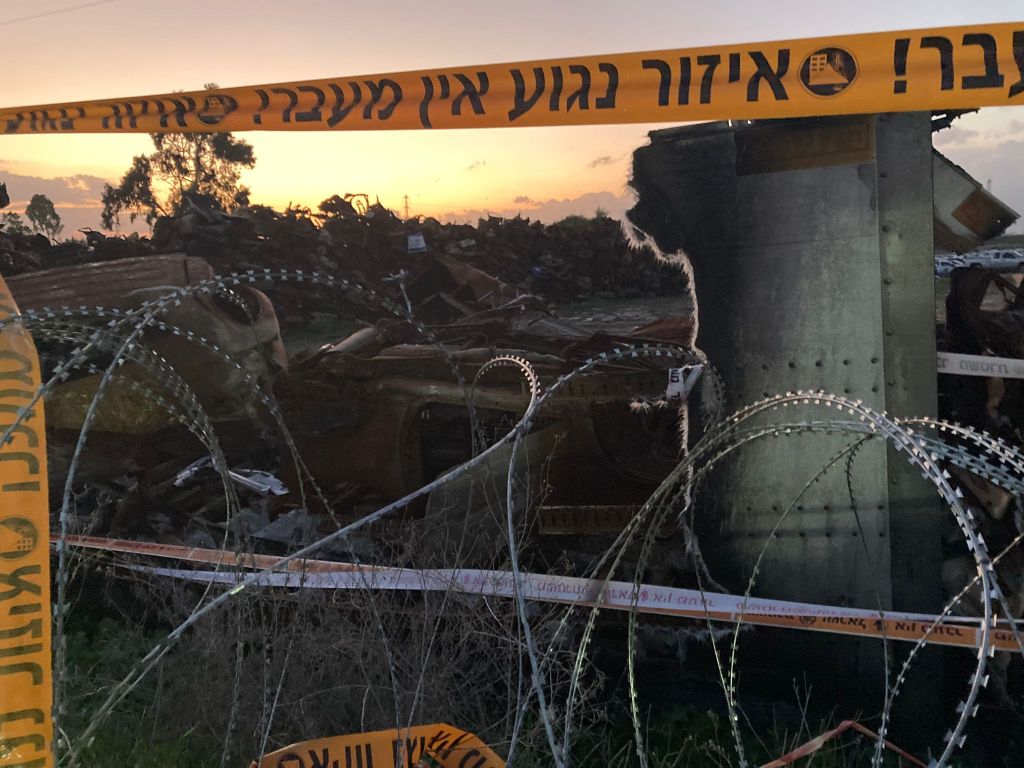 The final stop on our tour was to the car graveyard. We drove up to the field outside of Netivot as the sun was beginning to set. We were told there were some 3,000 vehicles of both Israeli victims and Hamas terrorists. It was a surreal ending to a heart wrenching day. There was razor wire around the field to keep out souvenir hunters. With the sun dipping below the Gaza horizon and the quiet of the yard itself, I realized that many of these vehicles had and still contain blood, ashes and body parts that the incredible ZAKA volunteers could either not find or could not clean out of the burnt and bullet riddled hulks that had at one time been someone’s prized possession. The vehicles piled up in rows and in the twilight of the dusk appeared eerily reminiscent of a neat peaceful cemetery giving no hint to the confusion, noise and terror that had marked their final moments.
